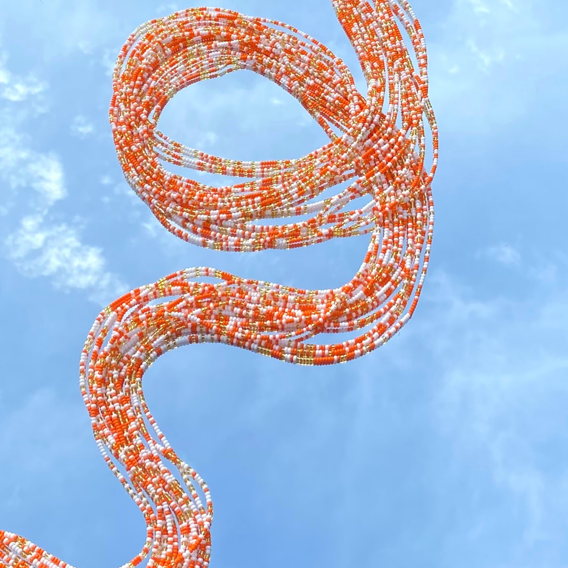 All of our waist beads are strung with 6-8 strands of uncoated cotton thread for durability and longevity.
