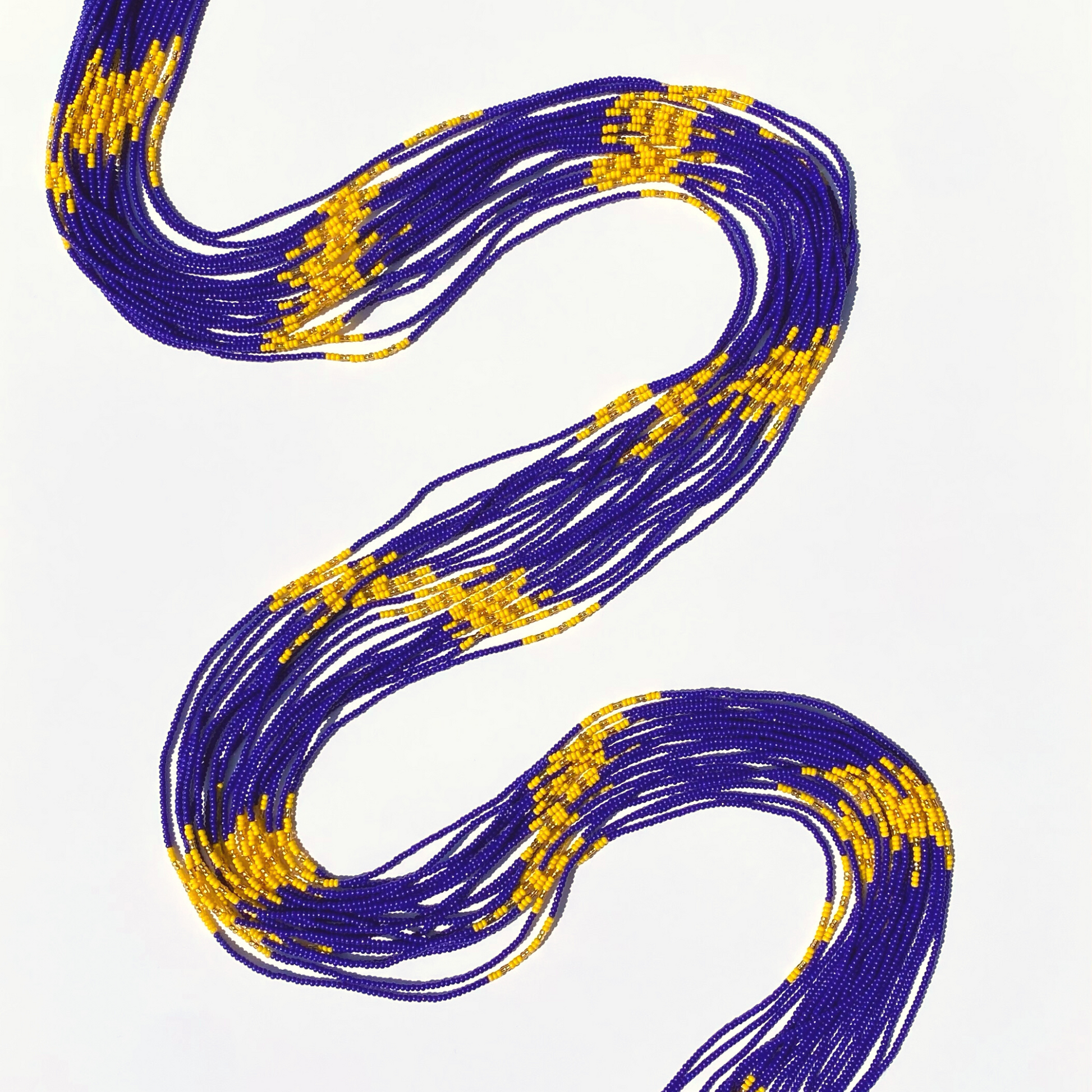 Description: These blue, yellow and gold waist beads represent the women of Sigma Gamma Rho.