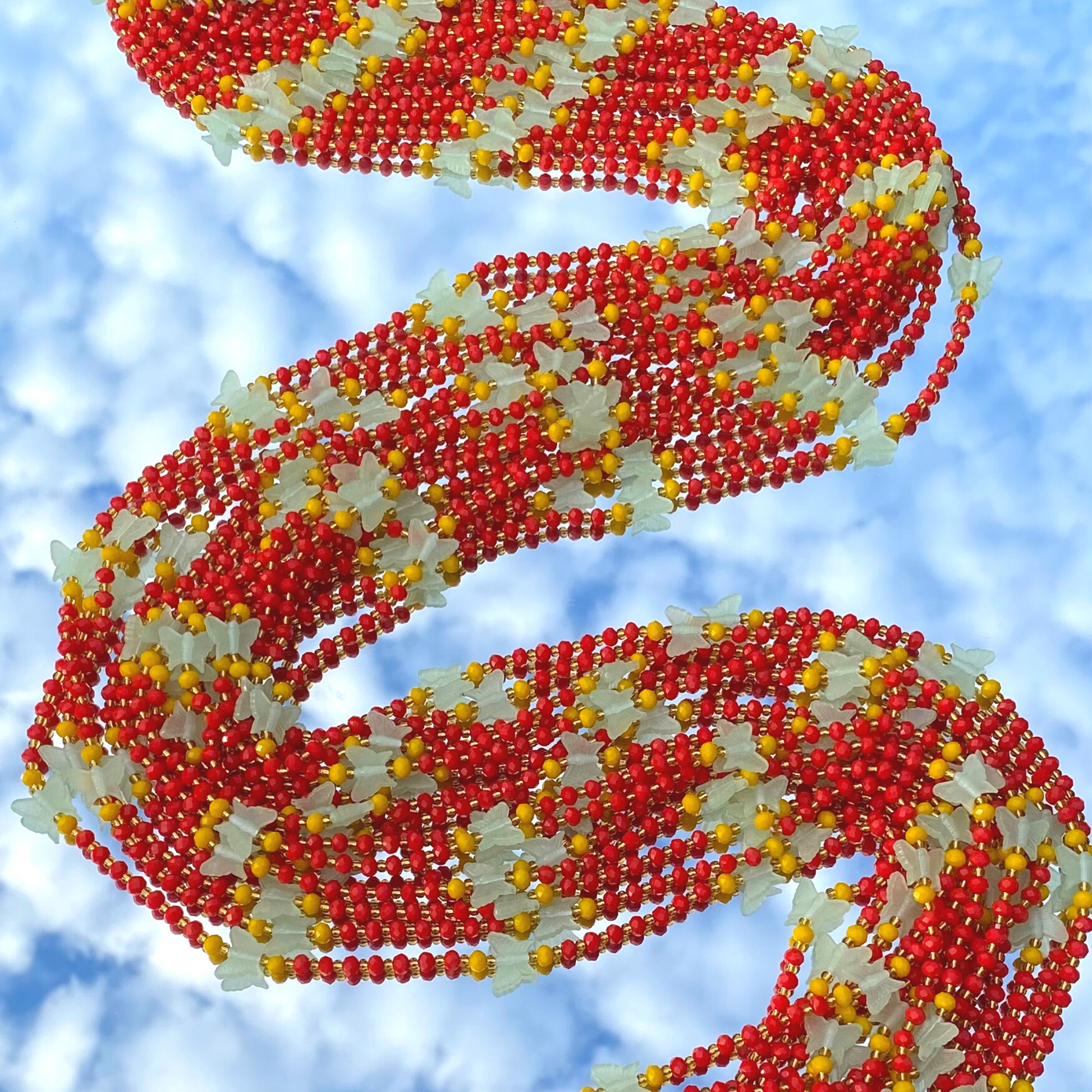 All of our waist beads are strung with 6-8 strands of uncoated cotton thread for durability and longevity.